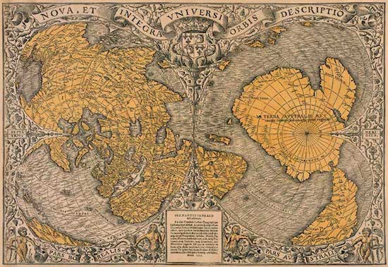Mapmaking is a complex and civilized task, thought to have emerged around 1000BC with the Babylonian clay tablets. Antarctica was officially first sighted by a Russian expedition in 1820 and is entirely covered in ice caps thought to have formed around 34-45 million years ago. Antarctica, therefore, should not be seen on any map prior to 1820, and all sighted maps of Antarctica should contain the polar ice caps, which are supposedly millions of years old.